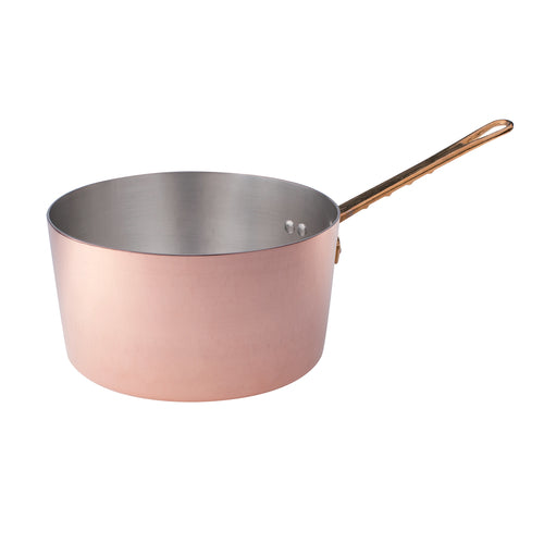 Sauce Pan, 4.76 qt., 9-7/16" dia. x 4-3/4"H, round, without cover, insulated tubular brass handle with stainless steel rivets, gas/electric/radiant safe, tin lined interior, 1/16" thick copper, hammered finish (Italy Stocked)