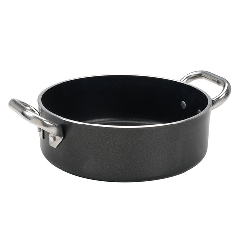 Casserole Pot, 8.88 qt., 12-5/8" dia. x 4-1/8"H, round, without cover, insulated riveted stainless steel handles, gas/electric/radiant safe, B-Cristal coating, 3/16" thick aluminum (Italy Stocked)