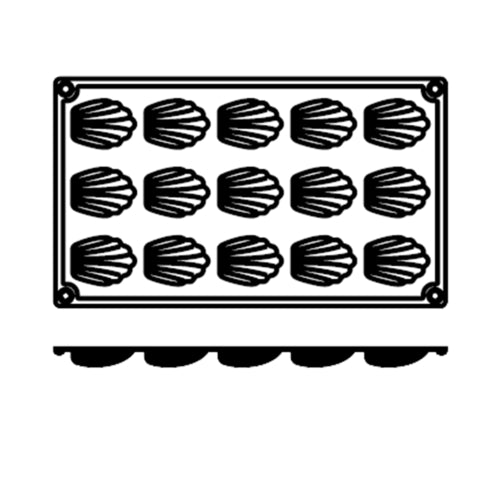 Madeleine Mold (15) 1-3/16"L x 1-5/8"W x 7/16"H mold, small, oven/microwave/refrigerator safe, Dolciflex silicone (Italy Stocked)