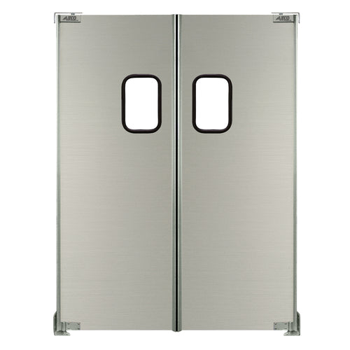 ImpacDor®, AL-125-2 Model, Standard and Custom Sizes, single or bi-parting panels, .063" thick anodized aluminum, aka "sheet door", 9" x 14" windows, gravity hinge, various options (contact factory for price)