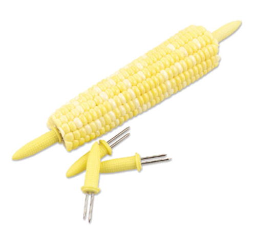 Corn Holder, 2-1/2"L, yellow handles with nickel prongs