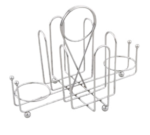 Sugar Packet Holder, 7-1/2" x 5" x 4-1/2", two packaged sugar holders, salt and pepper rings up to 1-3/4" dia., chrome plated wire with ball feet & center clip