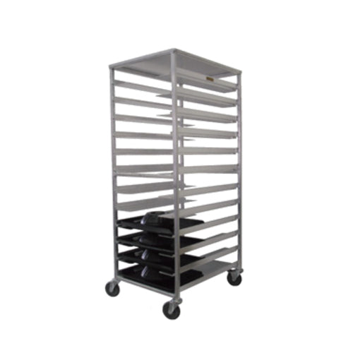 Value Line Room Service tray Cart, mobile, 25" W x 33" D x 69" H, fully welded aluminum alloy construction, holds (24) room service trays of various sizes, 5" swivel casters (two with brakes)