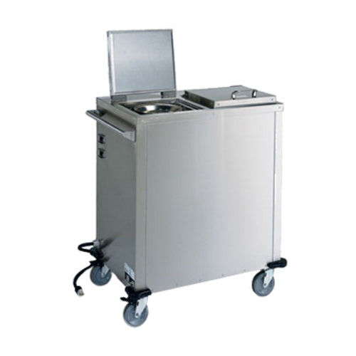 Convection Heated Plate Dispenser, mobile, for 7" - 10-1/4" plates, two self-leveling dispensers, enclosed base, fully insulated, corner bumpers, 18 gauge stainless steel exterior, high strength aluminum interior, (4) 5" casters, (2) with brakes, cord & plug, NEMA 6-20P, 208/240v/60/1-ph, 3200w, 16.3A