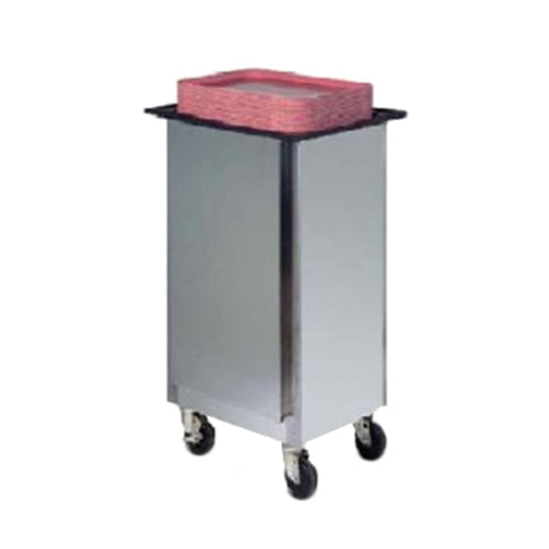 Tray Dispenser, enclosed, mobile, single self-leveling tray platform, for 14" x 18" trays, stainless steel construction, perimeter bumpers, (4) 5" casters, (2) with brakes, NSF