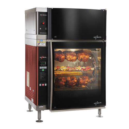 Rotisserie Oven, with ventless hood, electric, (7) removable stainless steel angled spits, 21-28 chicken capacity, cook-n-hold, electronic LED controller with display, drip pan with drain, double pane curved glass door, solid back, stainless steel construction, 4" adjustable legs, EcoSmart®, cULus UL EPH ANSI/NSF 4, CE, IPX3, TUV NORD, PCT
