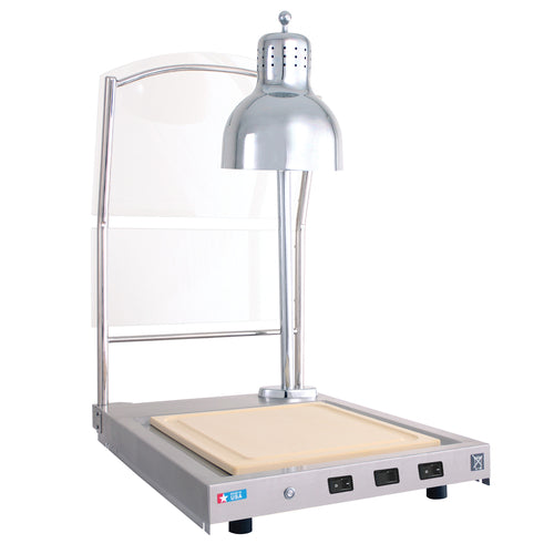Hot Carving Shelf, 31" x 18-3/8" x 25-1/2", indicator light, fix infrared lamp, (3) position HI/LOW/OFF toggle switch, cutting board, 35 lb. max capacity, recessed surface, framed clear glass breath guard, 1" legs, 18 gauge stainless steel construction, EcoSmart®, cULus, NSF, CE, EAC