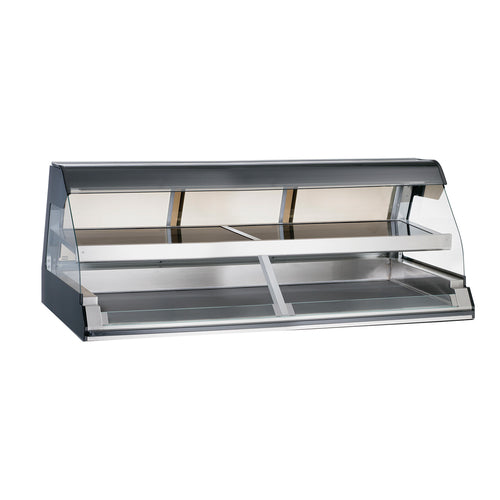 Halo Heat® Heated Two-Tier Display Case, countertop, 72" L, self-service, open front, curved glass style, (4) lights over both top heated shelf & lower heated shelves, thermostatically controls, (5) full & (5) 1/3 size or (3) sheet pan capacity, glass sliding rear doors, 10" x 60" rear work shelf, stainless steel interior & exterior, 4" legs, cULus, UL EPH Classified, CE, IPX3, TUV NORD, EAC