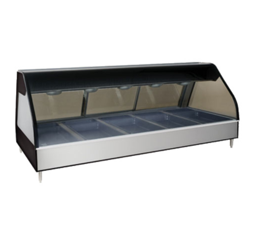Halo Heat® Heated Display Case, countertop 72" L, self-serve, open front, (10) overhead lights, (2) zone heated base with adjustable thermostats, (5) full & (5) 1/3 size or (3) sheet pan capacity, 26-7/16" x 69-3/16" x 2" pan insert with (3) wire pan grids, bronzed glass sliding rear doors, 10" x 60" rear work shelf, 4" legs, black exterior, EcoSmart®, cULus, UL EPH Classified, CE, IPX3, TUV NORD, EAC