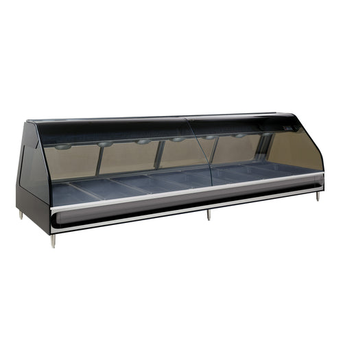 Halo Heat® Heated Display Case, countertop 96" L, full/self-serve, (14) overhead lights, (3) zone heated base with adjustable thermostats, 21-5/8" x 36-3/8" x 2" self-serve pan insert on customer left, bronzed glass sliding rear doors, stainless steel exterior, (2) 10" x 36" rear work shelves, 4" legs, EcoSmart®, cULus, UL EPH Classified, CE, IPX3, TUV NORD, EAC