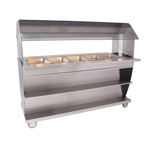 Halo Heat® Hot Food Table, system base, 72" W, (2) stainless steel tray slides, (5) 1/1 GN capacity, adjustable thermostat, (8) flood lamps, (4) Lexan heat guards, (2) side panels, (2) adjustable shelves, (4) 5" casters, EcoSmart®, cULus, UL EPH ANSI/NSF 4, CE, EAC