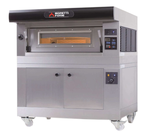 Moretti Forni Pizza Oven, deck-type, electric, (1) 26"W x 41"D x 7"H deck, (6) 12" or (2) 18" pizza capacity, (20) customizable programs, 840°F max operating temperature, timer, halogen lighting, (1) stainless steel bottom-hinged door, refractory brick baking chamber (entire camera), stainless steel construction, 7.7kW, CE, ETL, ETL-Sanitation, Made in Italy