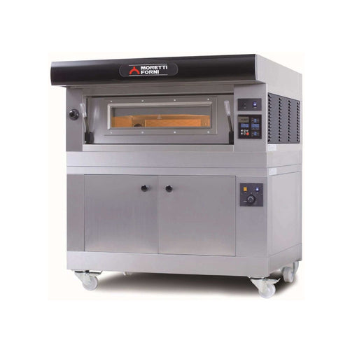 Moretti Forni Pizza Oven, deck-type, electric, (1) 38"W x 29"D x 7"H deck, (6) 12" or (2) 18" pizza capacity, (20) customizable programs, 840°F max operating temperature, timer, (1) stainless steel bottom-hinged door, halogen lighting, refractory brick baking chamber (entire camera), stainless steel construction, 7.7kW, CE, ETL, ETL-Sanitation, Made in Italy