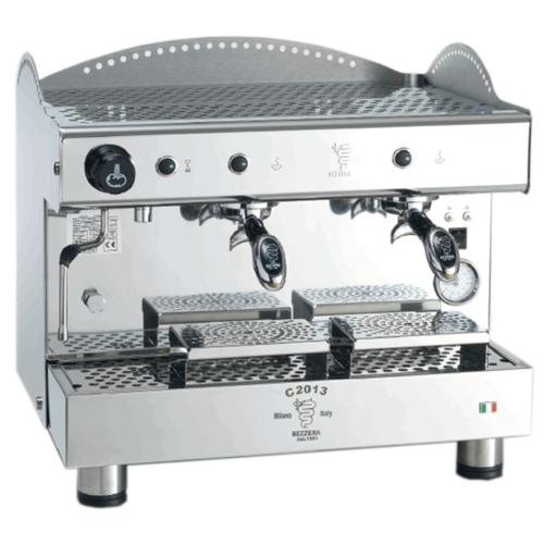 Bezzera Espresso Machine, semi-automatic, compact, (2) groups, thermostatically controlled, 2.1 gallon copper boiler, built-in volumetric pump, 304 stainless steel construction, 220v/50/60/1-ph, 2800 watts, CE, Made in Italy