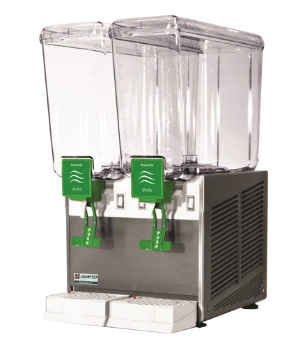 Cold Beverage Dispenser, electric, counter top, (2) 5 gallon clear polycarbonate removable bowls, (2) removable gravity tap faucets, stainless steel front, sides & rear, ETL, NSF, Made in Italy