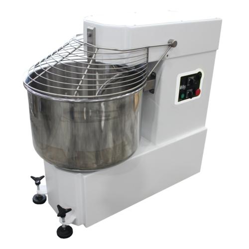 Moretti Forni Spiral Dough Mixer, 2-speed, 88 lb flour capacity, 132 lb dough capacity (dough capacity calculated with 55% of hydration, the maximum capacity may vary depending on the ingredients), 80 liter stainless steel bowl, with lift cage, timer, geared motor chain drive system, stainless steel frame, swivel casters with brakes, 4.5 HP, 220v/60/3-ph, ETL-Sanitation, Made in Italy