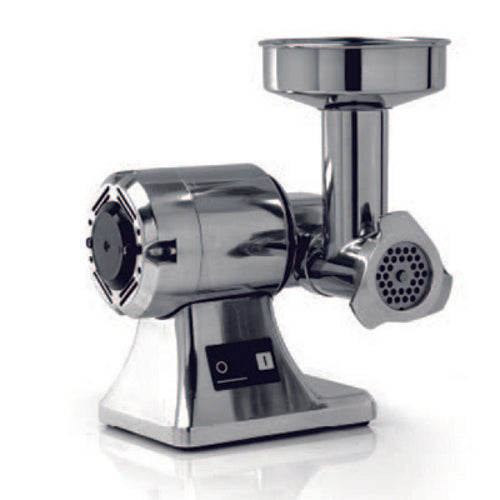 Meat Grinder, electric, 110 lb/hr production, includes stainless steel tray and #8 hub, round feed pan, 1/4" (6mm) plate, die-cast aluminum alloy construction, 80 rpm, 1/2 HP, CE, Made in Italy