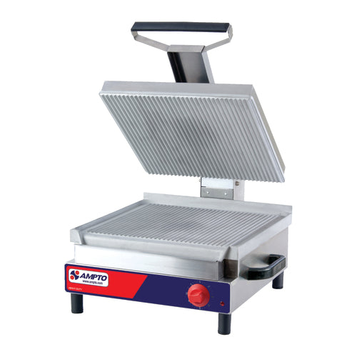 Sandwich Grill, electric, single, 17"W x 18" D ribbed cast aluminum grid plates, adjustable temperature control, stainless steel construction, 120v/60/1-ph, 14.1 amps, 1550 watts, NEMA 5-15P, ETL, ETL-Sanitation