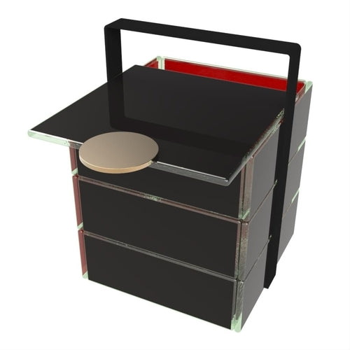 Bento Dinner Plate Basket, 5-1/2" x 5-1/2" x 8"H, square, for 3 large square bento dinner plates and a cover, glass, black exterior/red interior, Tempest by My Glass Studio (this item is a kit)
