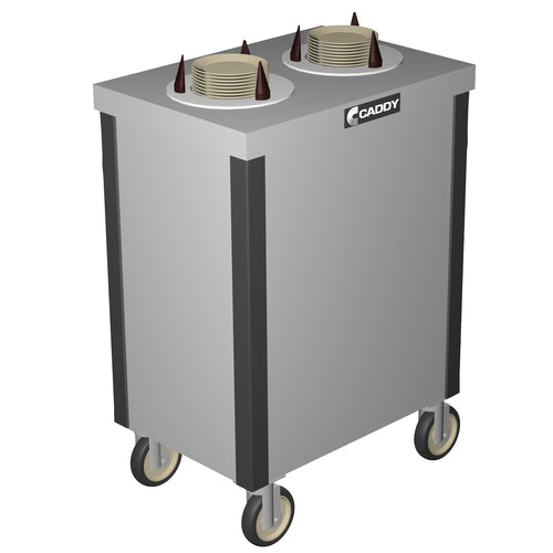 Caddy Magic Dish Dispenser, cabinet style, unheated, (2) self-leveling adjustable dispensing cylinders, approximate dish size 0" to 5-3/4" dia., stainless steel top, plastic corner bumpers, 4" swivel casters, NSF