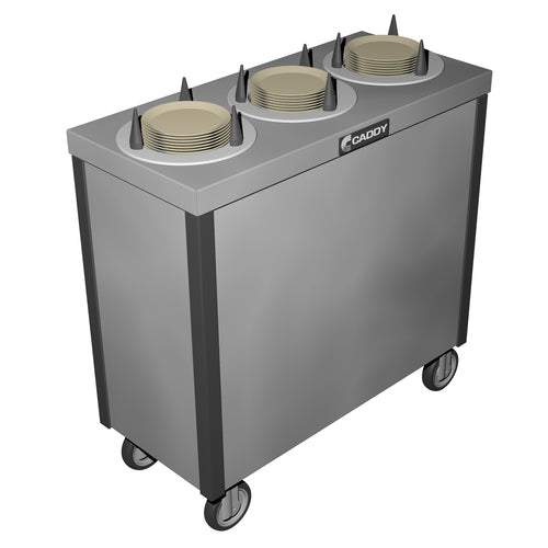 Caddy Magic Dish Dispenser, cabinet style, unheated, slim line, (3) self-leveling adjustable dispensing cylinders, approximate dish size 5-7/8" to 7-1/4" dia., stainless steel top, plastic corner bumpers, 4" swivel casters, NSF