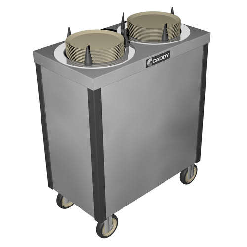 Caddy Magic Dish Dispenser, cabinet style, unheated, (2) self-leveling adjustable dispensing cylinders, approximate dish size 9-5/8" to 10-1/8" dia., stainless steel top, plastic corner bumpers, 4" swivel casters, NSF