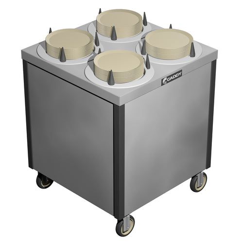 Caddy Magic Dish Dispenser, cabinet style, unheated, (4) self-leveling adjustable dispensing cylinders, approximate dish size 9-5/8" to 10-1/8" dia., stainless steel top, plastic corner bumpers, 4" swivel casters, NSF