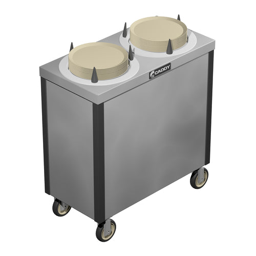 Caddy Magic Dish Dispenser, cabinet style, unheated, (2) self-leveling adjustable dispensing cylinders, approximate dish size 10-1/4" to 12" dia., stainless steel top, plastic corner bumpers, 4" swivel casters, NSF
