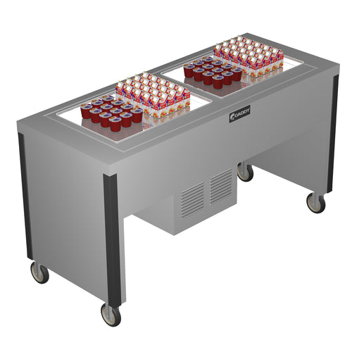 Frost Top Unit, electric, 77"W x 26"D x 35-1/4"H, open base, accommodates (4) 26" sheet pans - front to back, stainless steel construction, vertical corner bumpers, 4" heavy duty swivel casters (2 with brakes), 1/2 hp, self-contained refrigeration, cord with plug, NSF (contact factory for price)