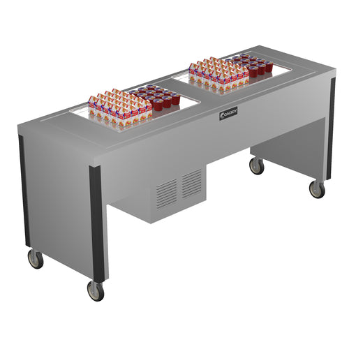 Frost Top Unit, electric, 95"W x 26"D x 35-1/4"H, open base, accommodates (5) 26" sheet pans - front to back, stainless steel construction, vertical corner bumpers, 4" heavy duty swivel casters (2 with brakes), 1/2 hp, self-contained refrigeration, cord with plug, NSF (contact factory for price)