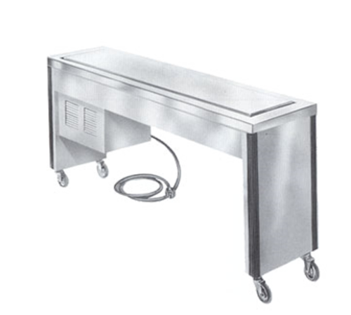 Frost Top Unit, electric, slimline, 109"W x 18"D x 35-1/4"H,open base, accommodates (4) 18" sheet pans-front to back, stainless steel construction, vertical corner bumpers, 4" heavy duty swivel casters (2 with brakes), 3/4 hp, self-contained refrigeration, cord with plug, NSF (contact factory for price)