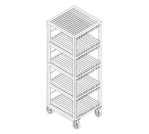 Vertical Tray Drying Rack, mobile, for correctional use, 24"W x 24"D x 70"H, (4) shelves, (14) tray slides per shelf, holds up to (112) trays, stainless steel construction, (2) 5" heavy duty polyurethane swivel casters & (2) fixed casters (contact factory for price)