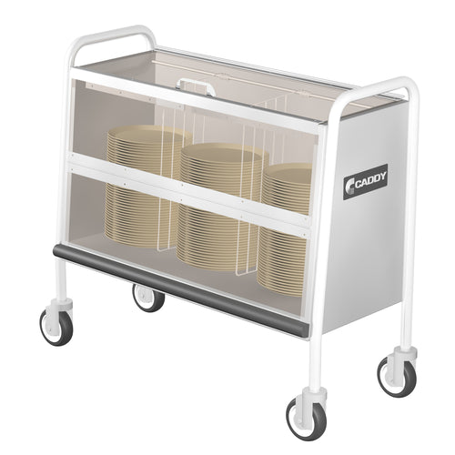 Dish/Tray Caddy, unheated, 35-1/2"W x 15-3/4"D x 30"H, single unit, enclosed with hinged plastic cover, holds approximately (120) 9", (160) 7", (200) 6" or (240) 5" plates, welded stainless steel construction, continuous neoprene bumper in stainless steel channel frame, 4" swivel casters, NSF