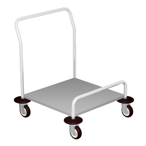 Platform Caddy for Racks, single tray stack, platform style, 26-1/2" x 26-1/2" platform, 29-1/4"H handle, for 20" x 20" trays, stainless steel construction, 4" swivel casters, (4) circular leg bumpers included, NSF