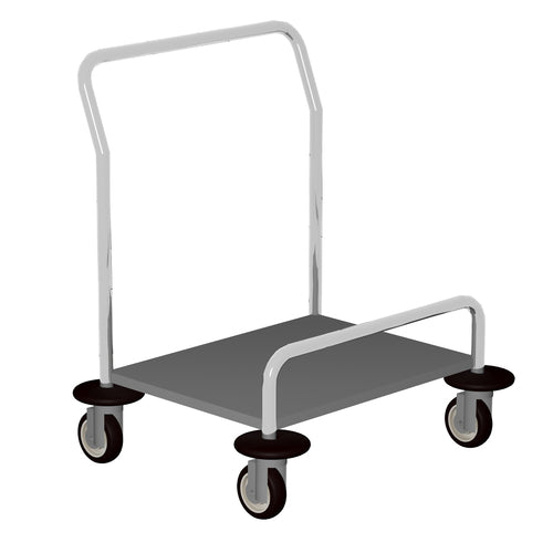 Platform Caddy for Trays, single tray stack, platform style, 21-1/2" platform, 29-1/4"H handle, for 15" x 20" trays, stainless steel construction, 4" swivel casters, (4) circular leg bumpers included, NSF
