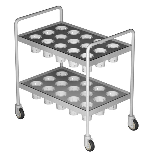 Bulk Silver Caddy, 34-1/2"W x 24-1/2"D x 34-3/4"H, (30) reinforced openings for cutlery cylinders on top & bottom shelves, rounded edges, 4" casters, solid 3/4" stem, stainless steel construction, NSF