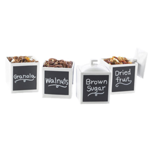 Storage Jar, 12 oz. capacity, 4"W x 4"D x 4"H, notched lid, cube, write-on surface, melamine, white (use with chalkboard pen)