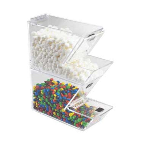 Topping Bin, 4"W x 11"D x 7"H, stackable, magnetic lid will stay up for easy scooping, clear, BPA Free