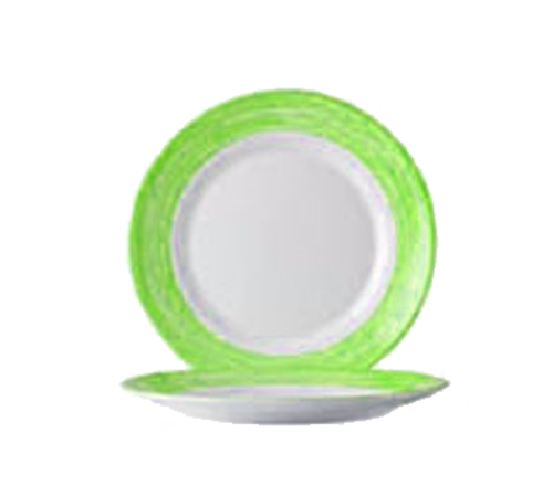 Side Plate, 7-1/2" dia., round, wide rim, fully tempered, microwave safe, glass, Arcoroc, Opal®, Brush Green, white with green rim