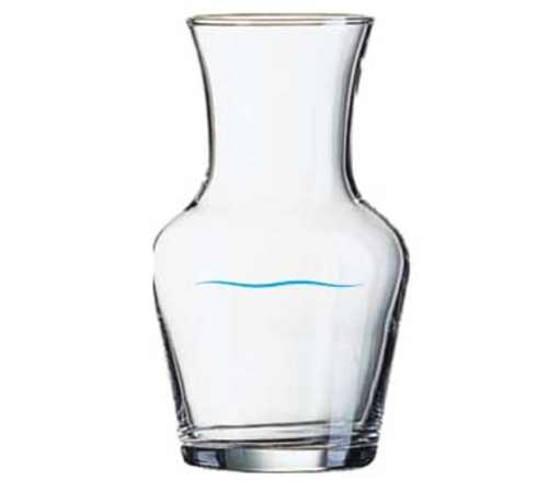 Carafe, 8-1/4 oz. (1/4 L), 5-1/4"H, with blue wave pour line, glass, Arcoroc, Wine by the Glass, clear (H 51/4" T 2-1/4" B 2-1/4" M 3-1/8")