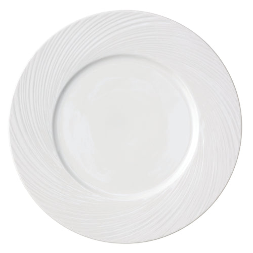 Service Plate, 12" dia., round, wide embossed rim, extra strong porcelain, Arcoroc, Candour Cirrus