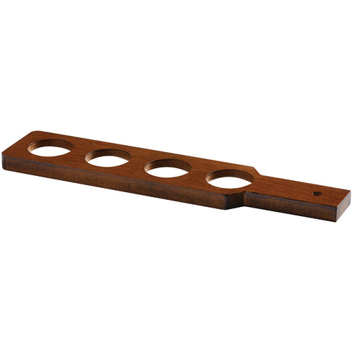 Beer Paddle, 16" x 3-1/4", with (4) 2" dia. wells, hollow, wood, Arcoroc, walnut finish (hand wash only)