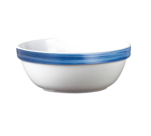 Bowl, 10-1/2 oz., 4-3/4" dia., round, stackable, fully tempered, microwave safe, glass, Arcoroc, Opal®, Brush Blue Jean, white with dark blue rim