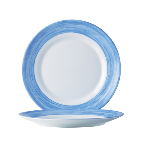 Plate, 10" dia., round, wide rim, fully tempered, microwave safe, glass, Arcoroc, Opal®, Brush Blue Jean, white with blue rim (replaces H3954)