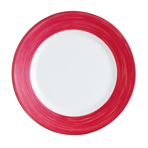Plate, 10" dia., round, wide rim, fully tempered, microwave safe, glass, Arcoroc, Opal®, Brush Cherry, white with red rim (replaces H1769)