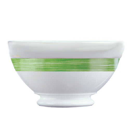 Bowl, 17-1/4 oz., 5-1/8" dia., round, footed, stackable, fully tempered, microwave safe, glass, Arcoroc, Opal®, Brush Green, white with green stripe