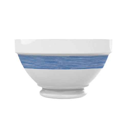 Bowl, 17-1/4 oz., 5-1/8" dia., round, footed, stackable, fully tempered, microwave safe, glass, Arcoroc, Opal®, Brush Blue Jean, white with dark blue stripe