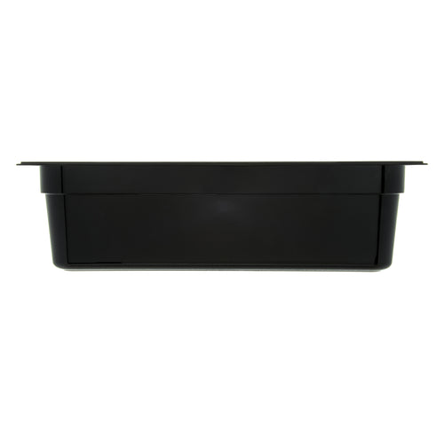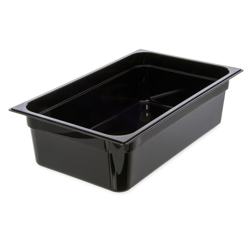 StorPlus™ Food Pan, 1/1 full size, 19.4 qt. capacity, 20-3/4" x 12-3/4" x 6" deep, molded-in capacity indicators, temperature range: -40° - 212° F, reinforced top & bottom corners, spoonable bottom, dishwasher safe, smooth interior finish, textured non-slip exterior finish, polycarbonate, black, NSF, Made in USA
