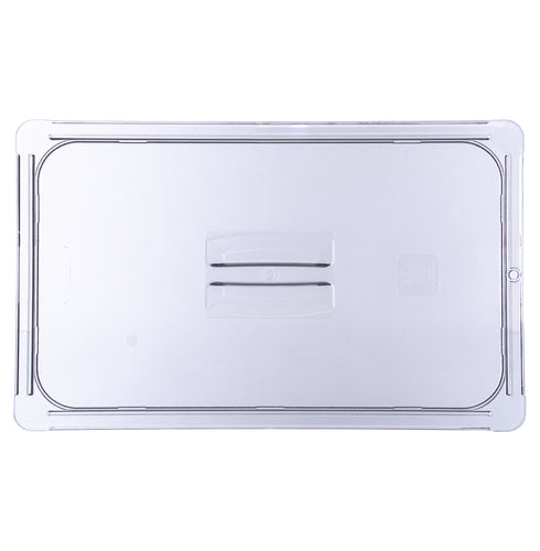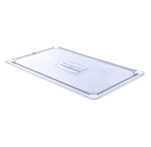 StorPlus™ Universal Lid, for 1/1 full-size food pan, handled, solid, stackable, temperature range: -40° - 212° F, dishwasher safe, textured non-slip finish, polycarbonate, clear, NSF, Made in USA