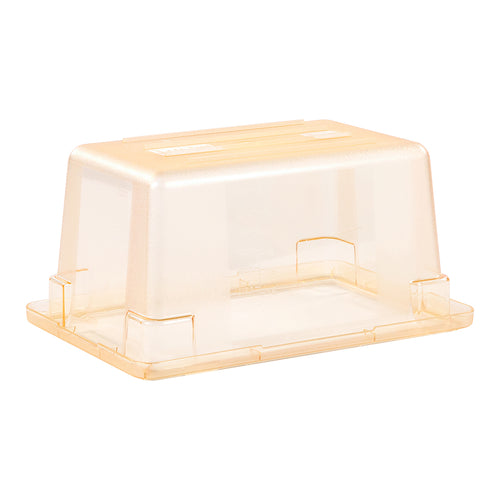 StorPlus™ Food Storage Box, 5 gallon, 18"L x 12"W x 9"H, color-coded, reinforced corners, stackable, date & capacity indicators, easy-grip handles, break-resistant, dishwasher safe, textured non-slip finish, polycarbonate, transparent, yellow, NSF, Made in USA